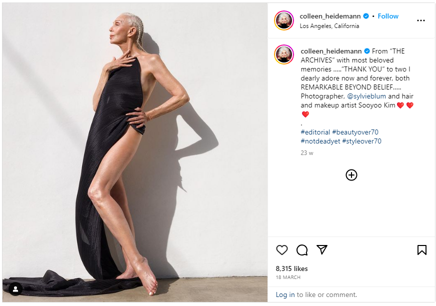 Colleen Heidemann’s is a true inspiration for generations of women, who find motivation in her confidence and defiance of age discrimination.