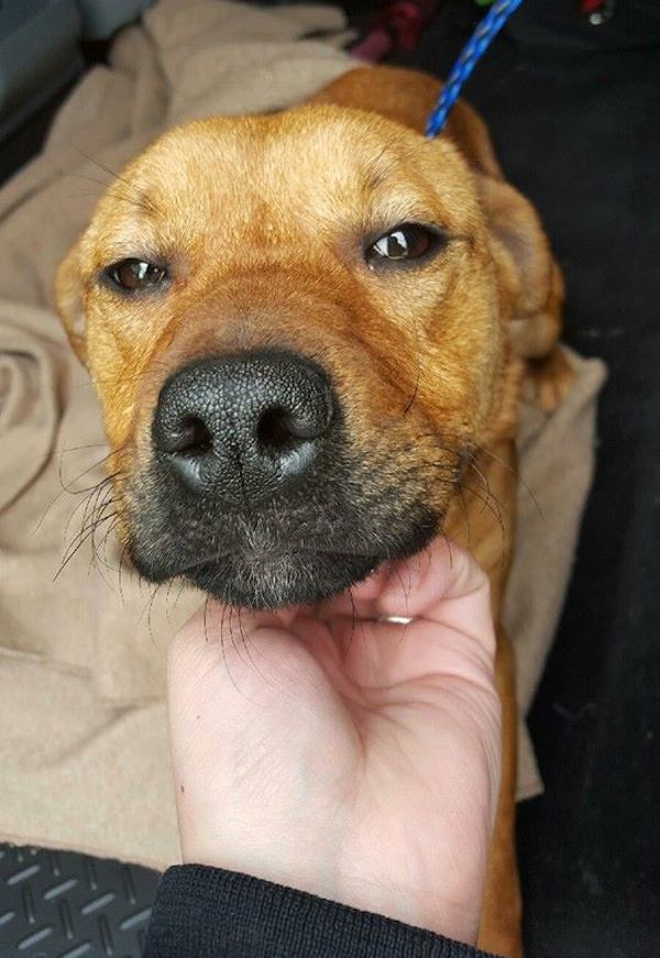 Although the rescue thought Sparkle had mange at first, she doesn’t. And other than being skinny, she’s in good health. From the photos and video Detroit Pit Crew Rescue shared, Sparkle looks like a friendly, affectionate dog and great with kids!